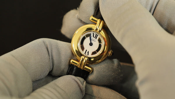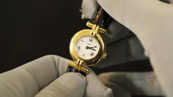 Cartier Must Colisee W1006654/1902 Quartz Cal.90.06 SV925 Leather Genuine D-buckle (GP) Trinity dial Overhauled