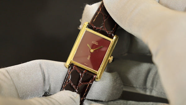 Cartier Must Tank LM Manual winding SV925 Leather Genuine buckle (GP) Garnet dial Bordeaux dial Overhauled New finish