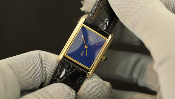 Cartier Must Tank LM Manual winding Cal.78-1 SV925 Leather Genuine buckle (GP) Lapis lazuli dial Overhauled