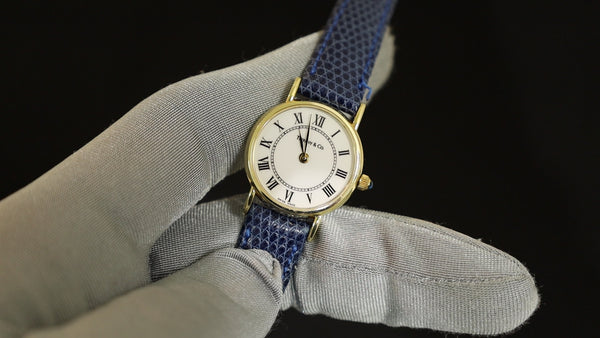 Tiffany Round Classic 60-301 Quartz Cal.976.001 14K Leather Genuine Buckle (GP) White Dial Overhauled