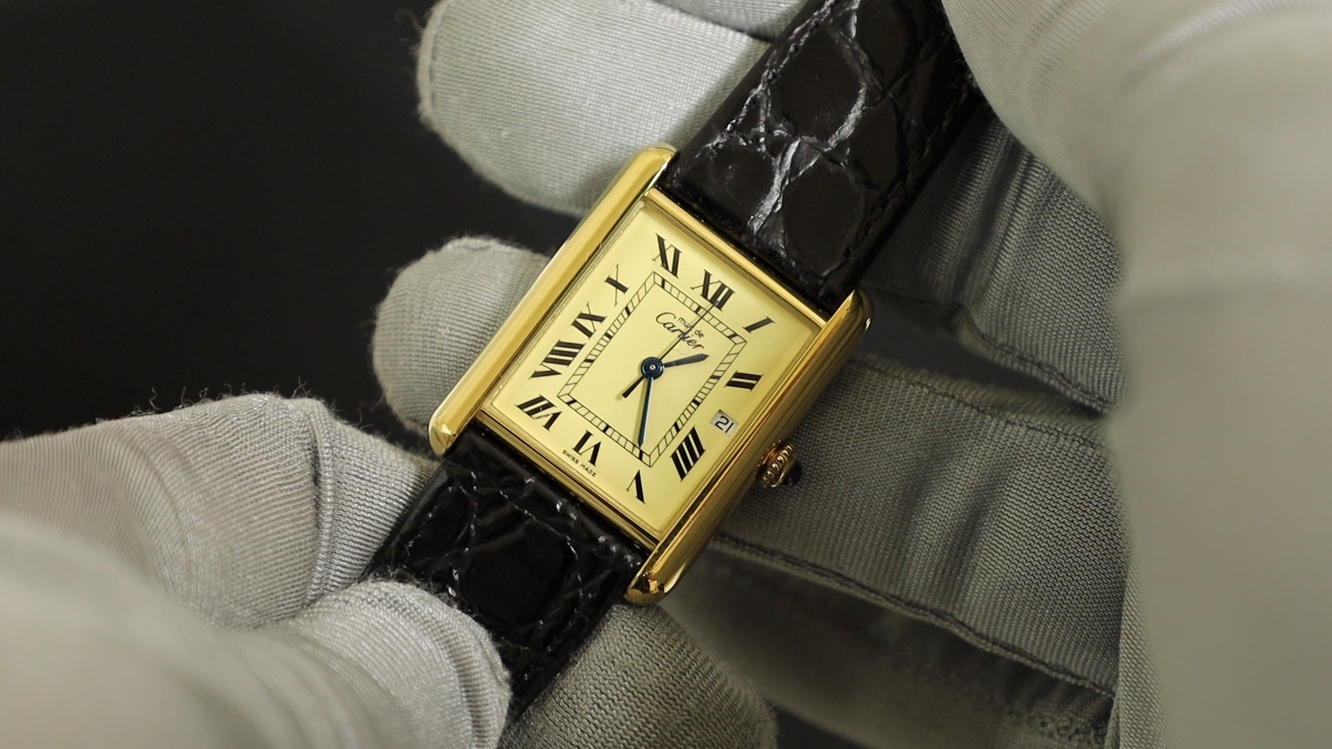 カルティエ マストタンク GM(XL) 2413 クォーツ Cal.687 SV925 革 純正尾錠(GP)アイボリーローマン文字盤 (SWISS MADE表記) オーバーホール済み