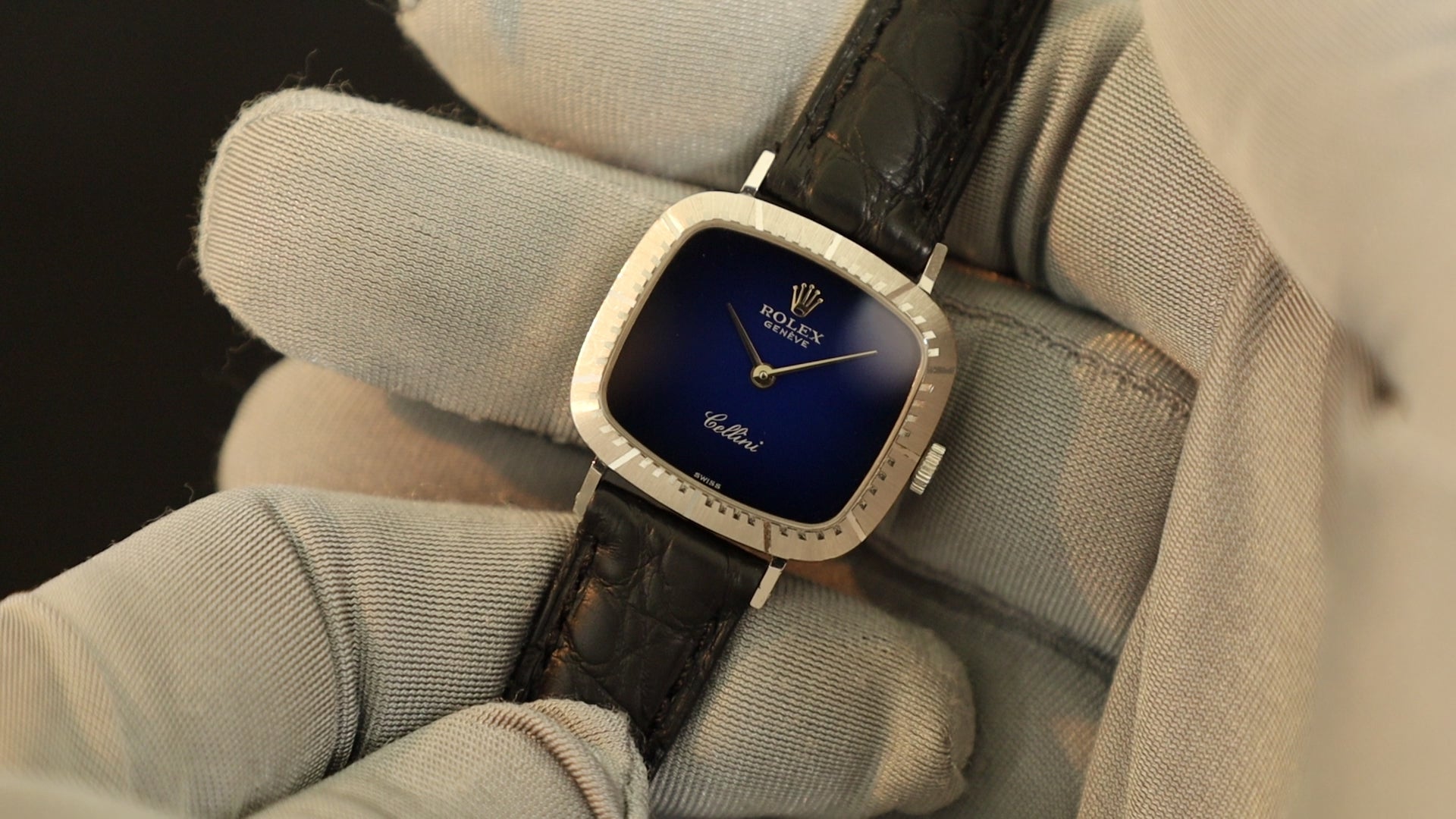 Rolex Cellini 4084 Manual winding 750 Leather Genuine buckle (SS) Blue gradient dial No. 43 (1975) Overhauled