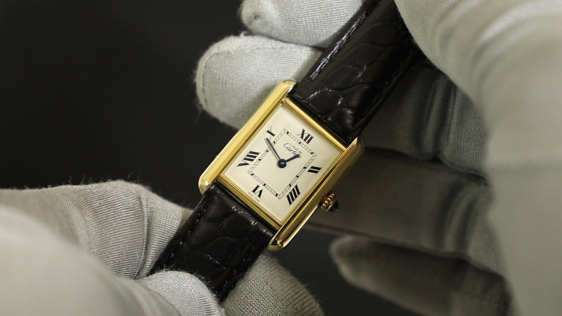 カルティエ マストタンク MM W1013654 / 2415 クォーツ Cal.057 SV925 革 純正Dバックル(GP) ホワイト飛びローマン文字盤(SWISS MADE表記)箱 オーバーホール済み