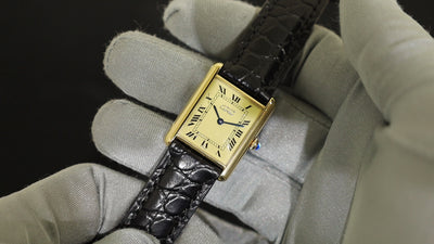 カルティエ マストタンク LM 590005 クォーツ Cal.90 SV925 革 純正尾錠(GP) アイボリーローマン文字盤 箱 冊子 保証書(1995年)オーバーホール済み