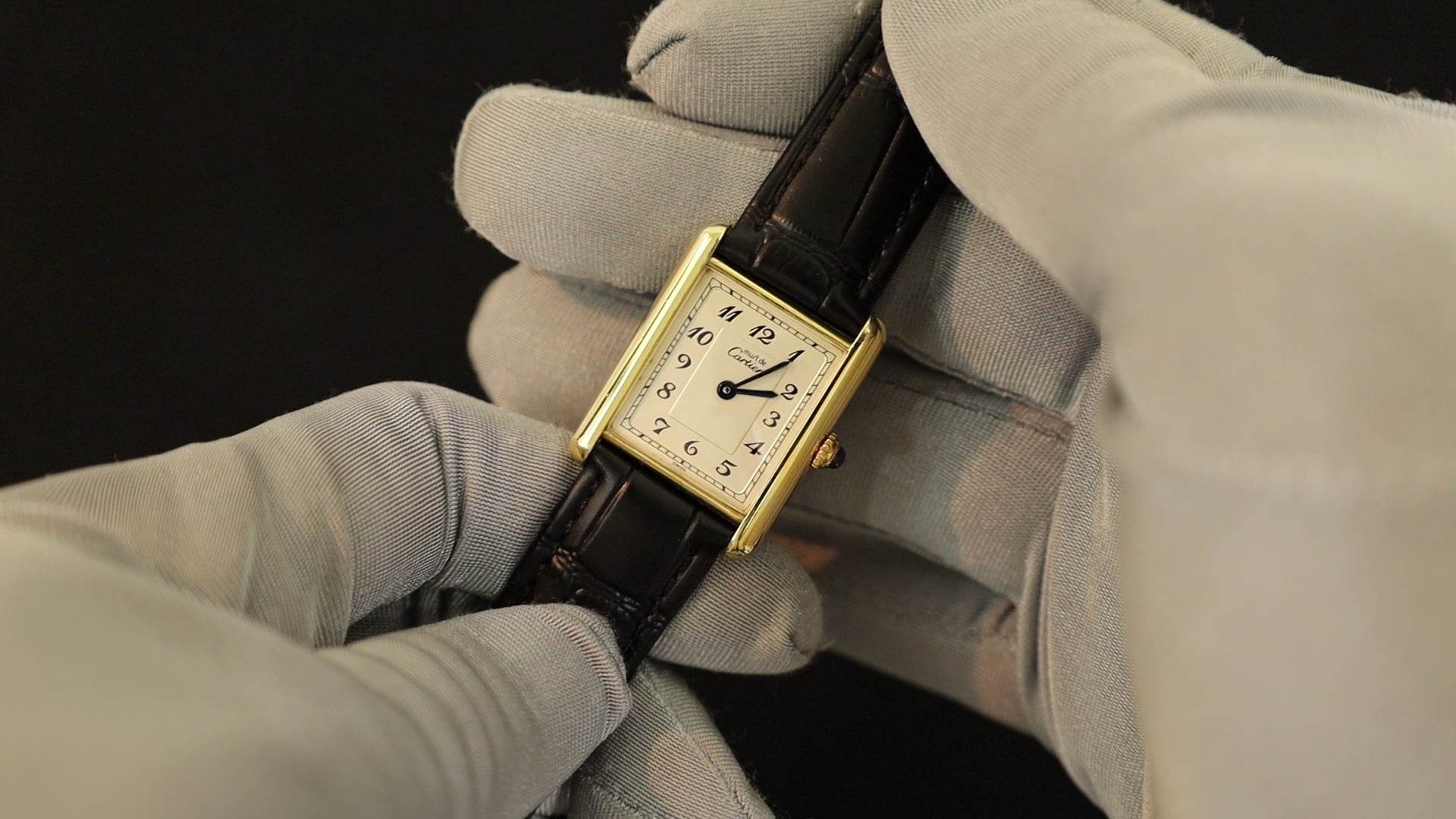 Cartier Must Tank LM 590005 Quartz Cal90 SV925 Leather Genuine D Buckle (GP) Arabic Dial Overhauled