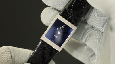 Rolex Cellini 4014 manual winding Cal. 1601 750 leather watch with genuine stainless steel buckle, blue dial, 22 x 29mm, 34th series (1971), genuine leather strap (shows signs of use), overhauled.