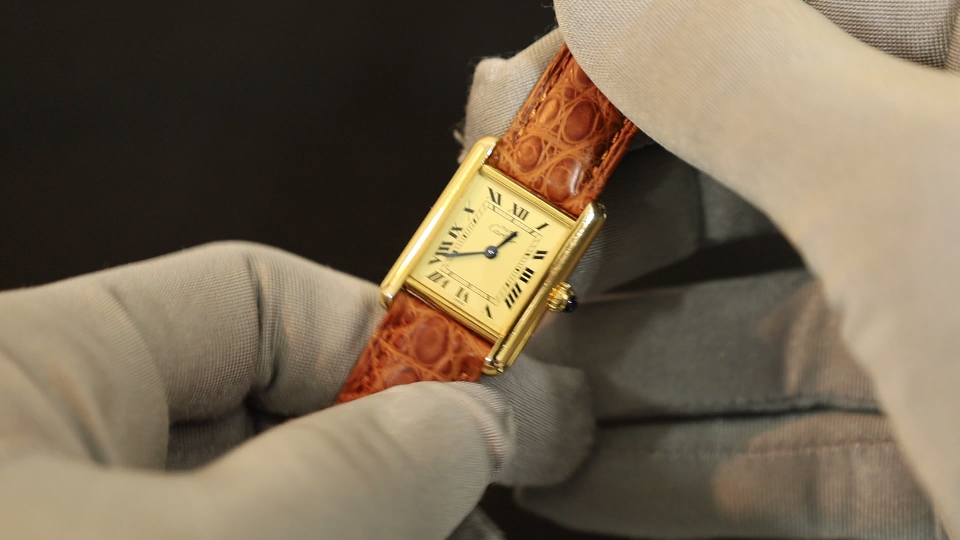 Cartier Must Tank SM 5057001 Quartz Cal.057 SV925 Leather Buckle (GP) Ivory Roman Dial Overhauled
