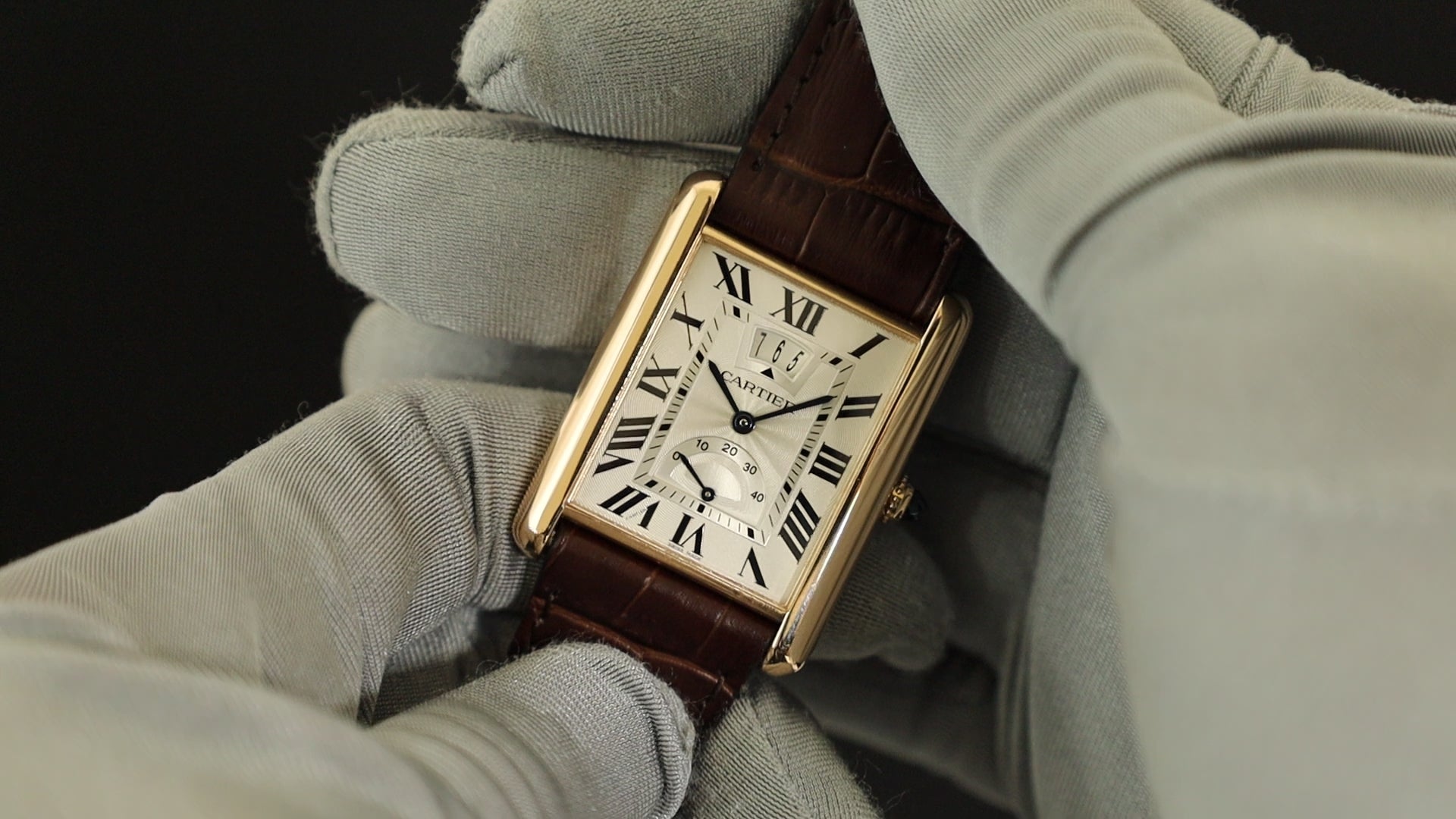 Cartier Tank Louis Cartier XL W1560003 / 3185 Automatic Caliber 9753MC AU750 Leather Strap with Genuine D-buckle (AU750) Silver Guilloche Dial Box Warranty (2017) Overhauled