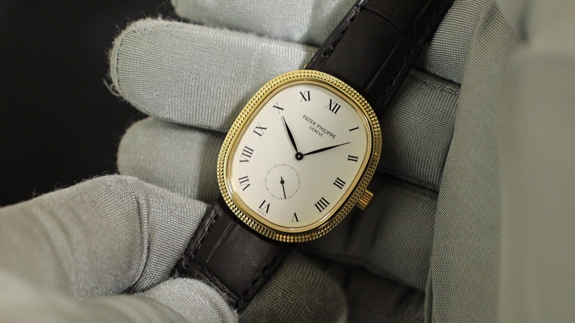 Patek Philippe Golden Ellipse 3989, manual winding, Cal. 215, 750YG, leather (JEAN ROUSEAU), genuine pin buckle (750YG), white dial, overhauled.