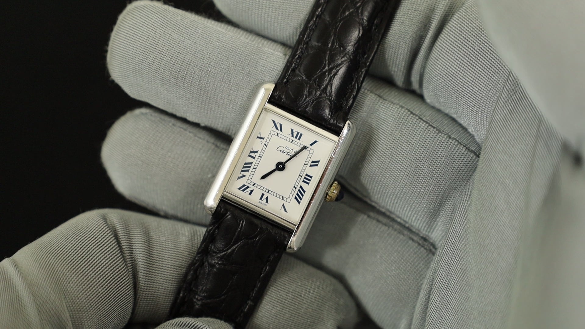 Cartier Must Tank SM 1614 Quartz Caliber 057 SV925 Leather Strap with Genuine D-Buckle (Stainless Steel) White Roman Dial Overhauled