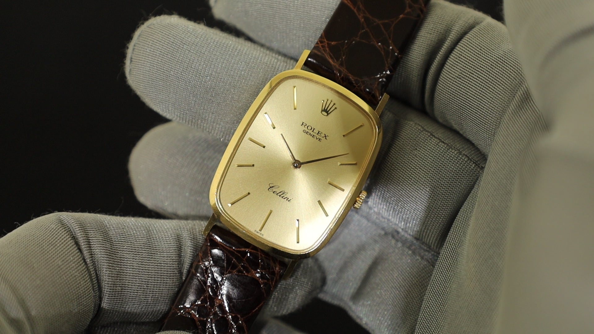 ロレックス チェリーニ 4113 手巻き Cal.1600 750 革 純正尾錠(GP)シャンパン文字盤 42番台(1974年)オーバーホール済み