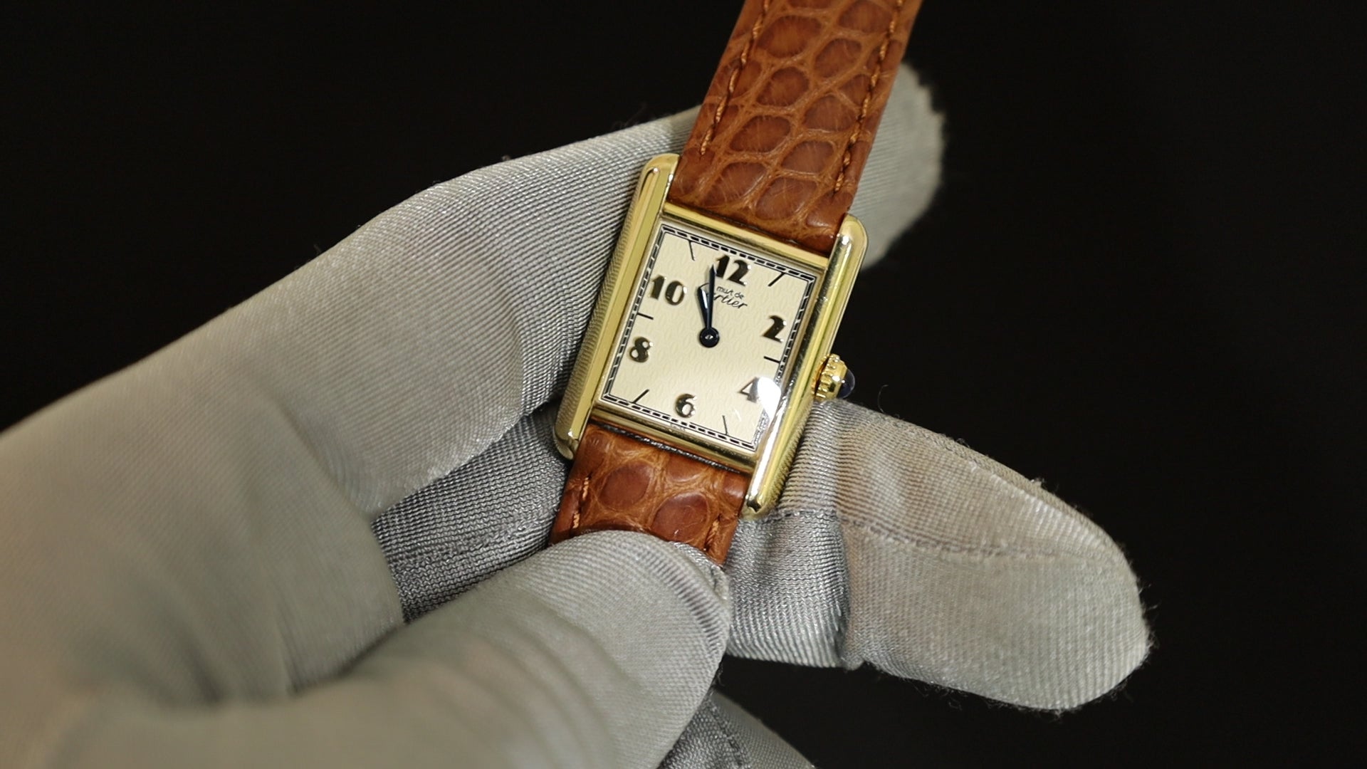 Cartier Must Tank SM W1008354 / 1613 Quartz Cal.057 SV925 Leather Genuine D Buckle (GP) Flying Arabic CC Dial Overhauled