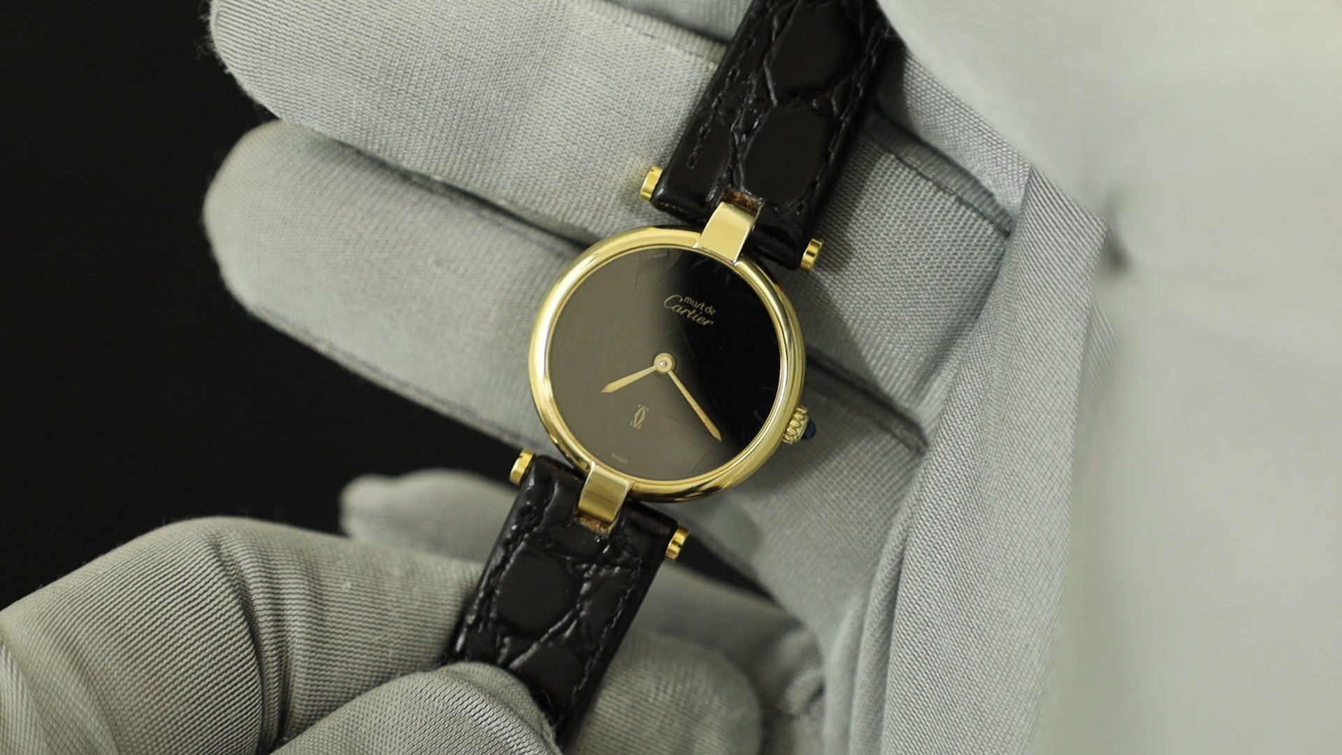 Cartier Must Vendôme VLC SM Quartz Cal.81 SV925 Leather Strap with Genuine GP Buckle, Onyx Dial, Overhauled