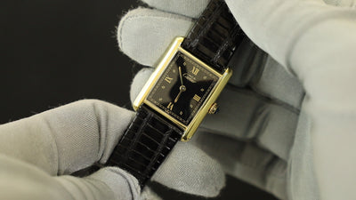 Cartier Must Tank LM 590005 Quartz Caliber 90 SV925 Leather Strap with Genuine GP Buckle, Black Roman Dial, Overhauled and Finished to Look Like New