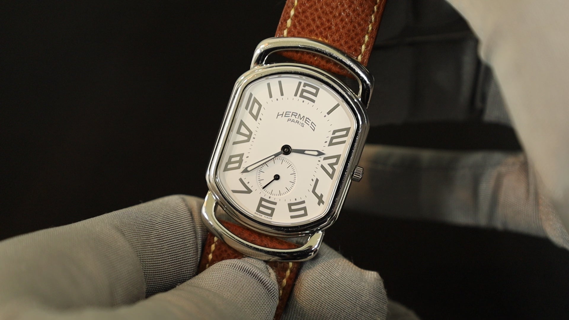 Hermes Rally RA1.810 Quartz Cal.980.163 SS Genuine leather strap (□F stamp: 2002) Genuine buckle (SS) White dial Overhauled