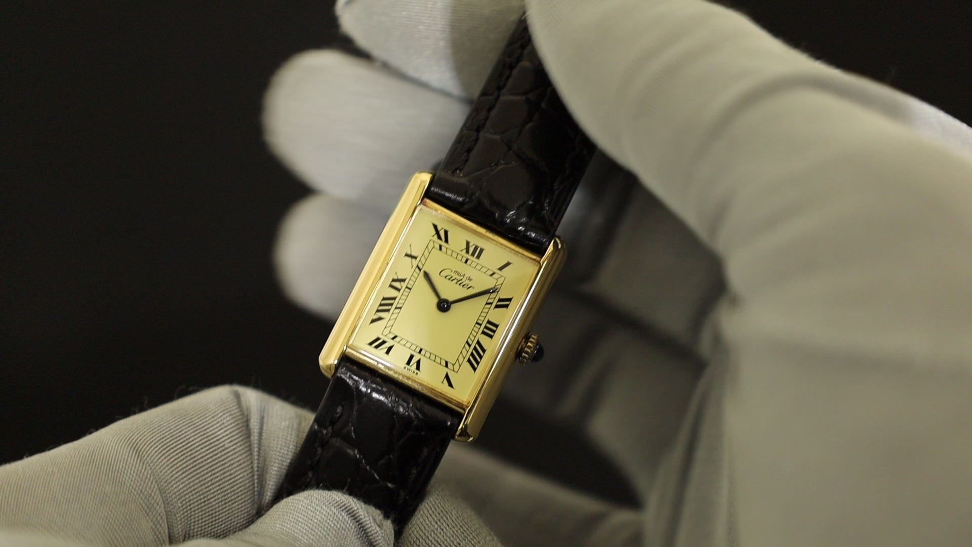 カルティエ マストタンク LM 手巻き SV925 革 純正尾錠(GP) アイボリーローマン文字盤 オーバーホール済み