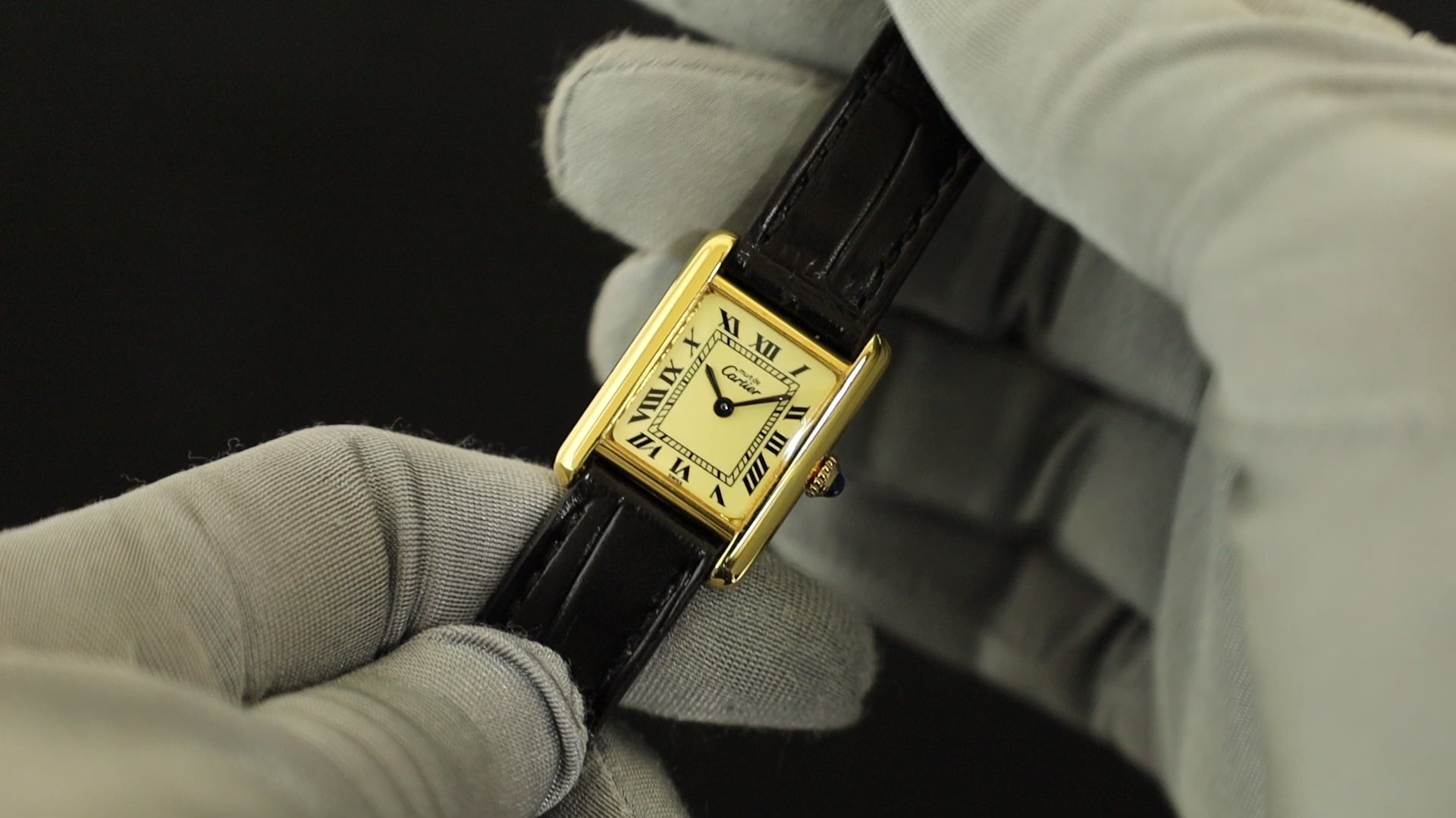 カルティエ マストタンク SM 手巻き Cal.78-1 SV925 革 純正尾錠(GP)アイボリーローマン文字盤 オーバーホール済み