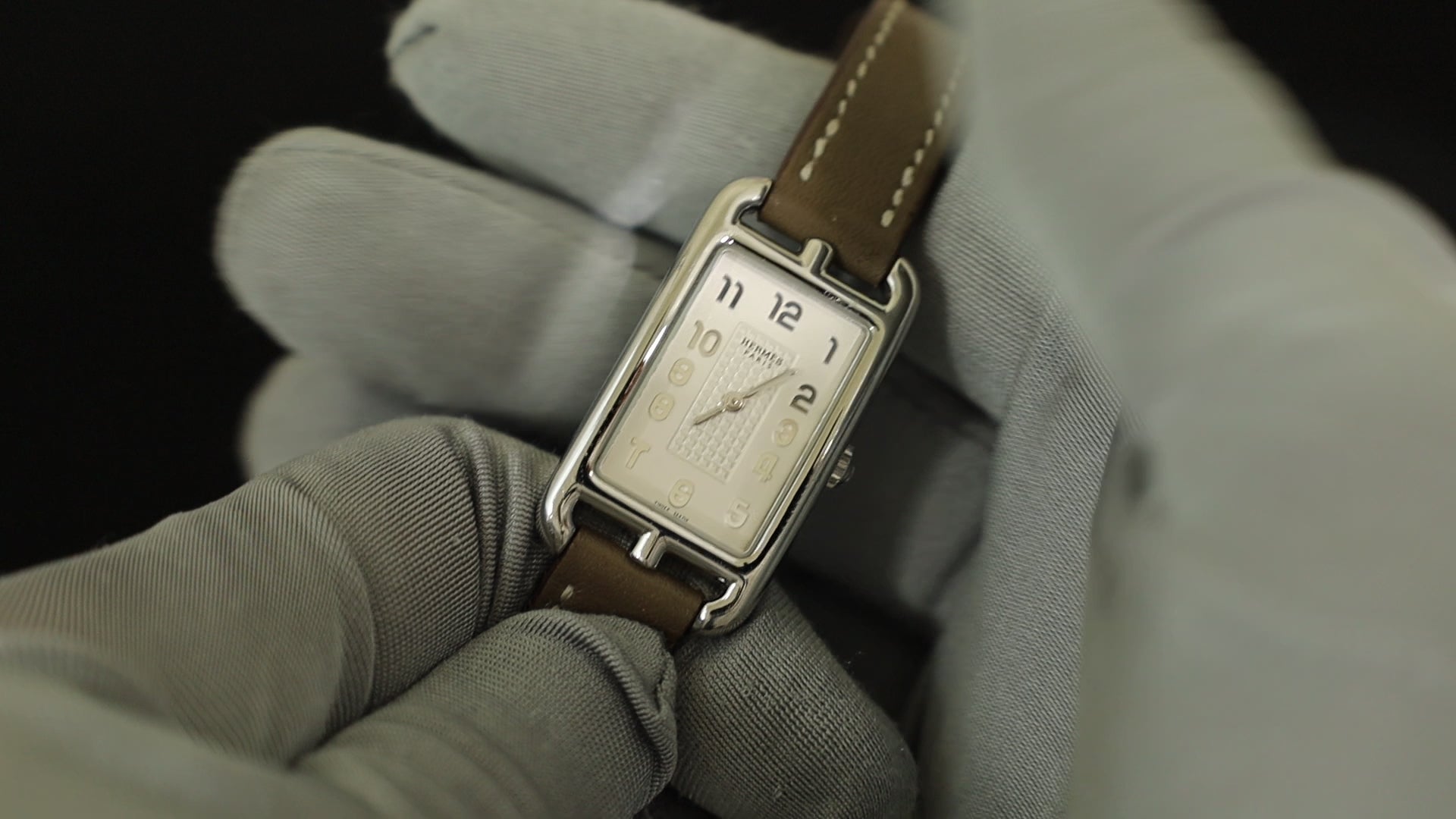 Hermès Nantucket NA2.210 Quartz Cal.280.002 Stainless Steel Watch with Genuine Leather Strap (R Stamp: 2014) and Genuine Stainless Steel Buckle. Silver Dial. Overhauled.