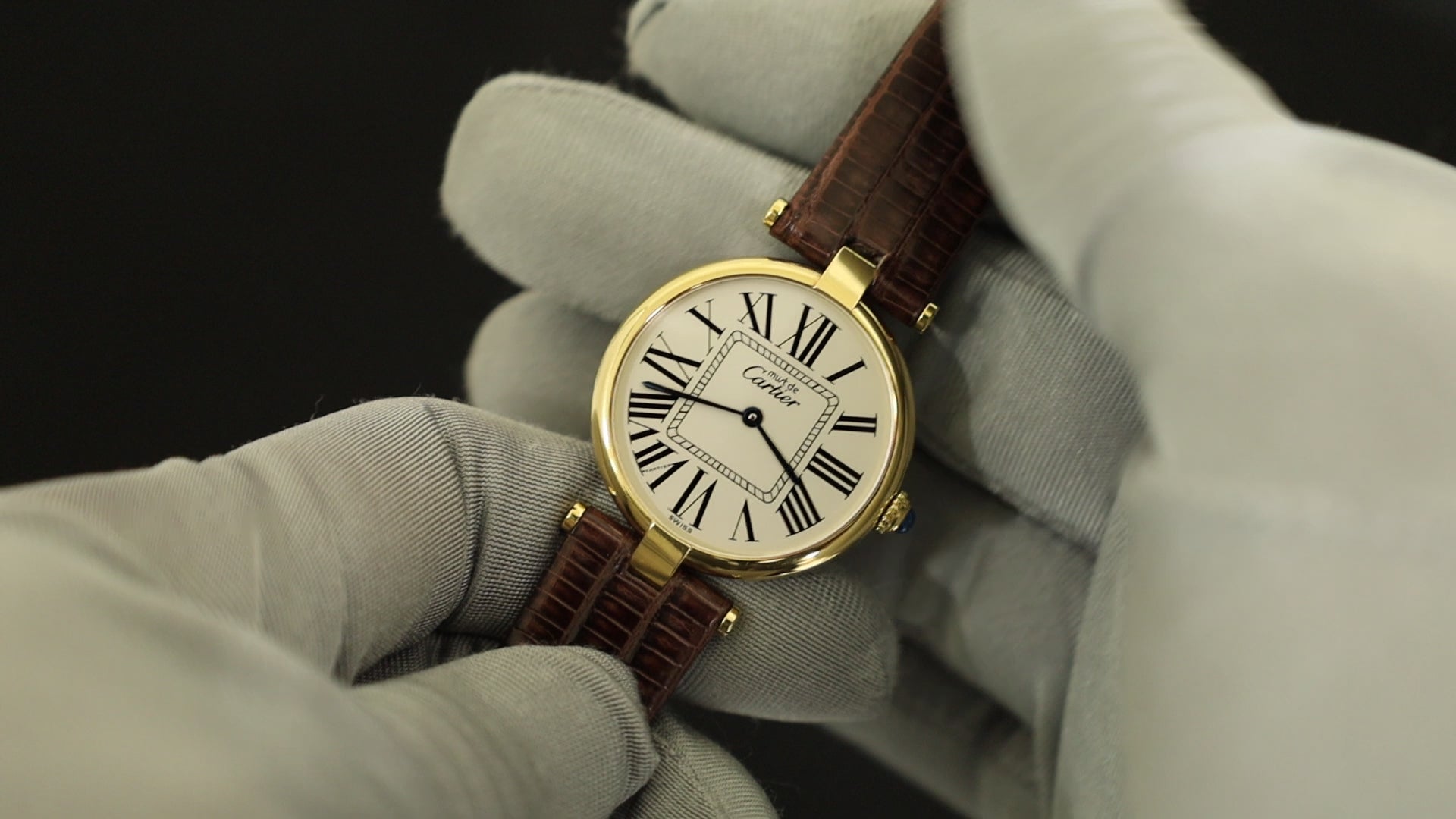 Cartier Must Vendôme VLC LM 590003 Quartz Caliber 90 SV925 Leather Strap with Genuine GP Buckle, Opalescent Dial, Box, Warranty Card (1992) and Booklet, Overhauled