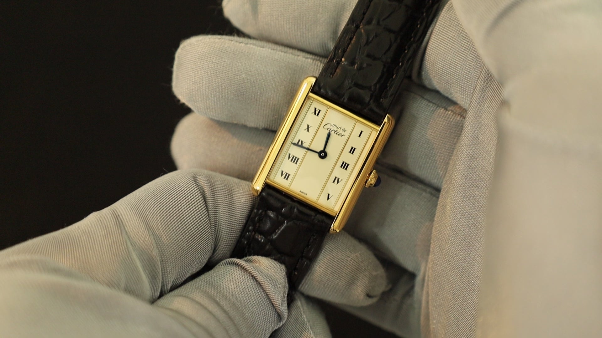 Cartier Must Tank LM 590005 Quartz Cal.90 SV925 Leather Genuine Buckle (GP) Straight Roman Dial Overhauled