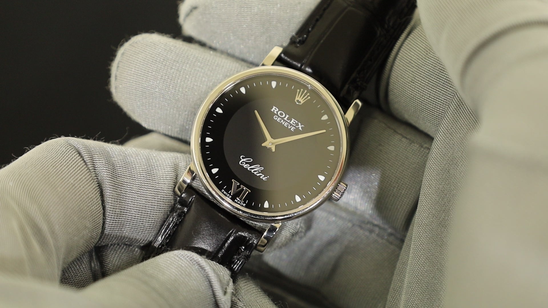 ロレックス チェリーニ 5115 手巻き Cal.1602 750 革 純正尾錠(750) ブラック文字盤 A番(1998年~1999年) オーバーホール済み