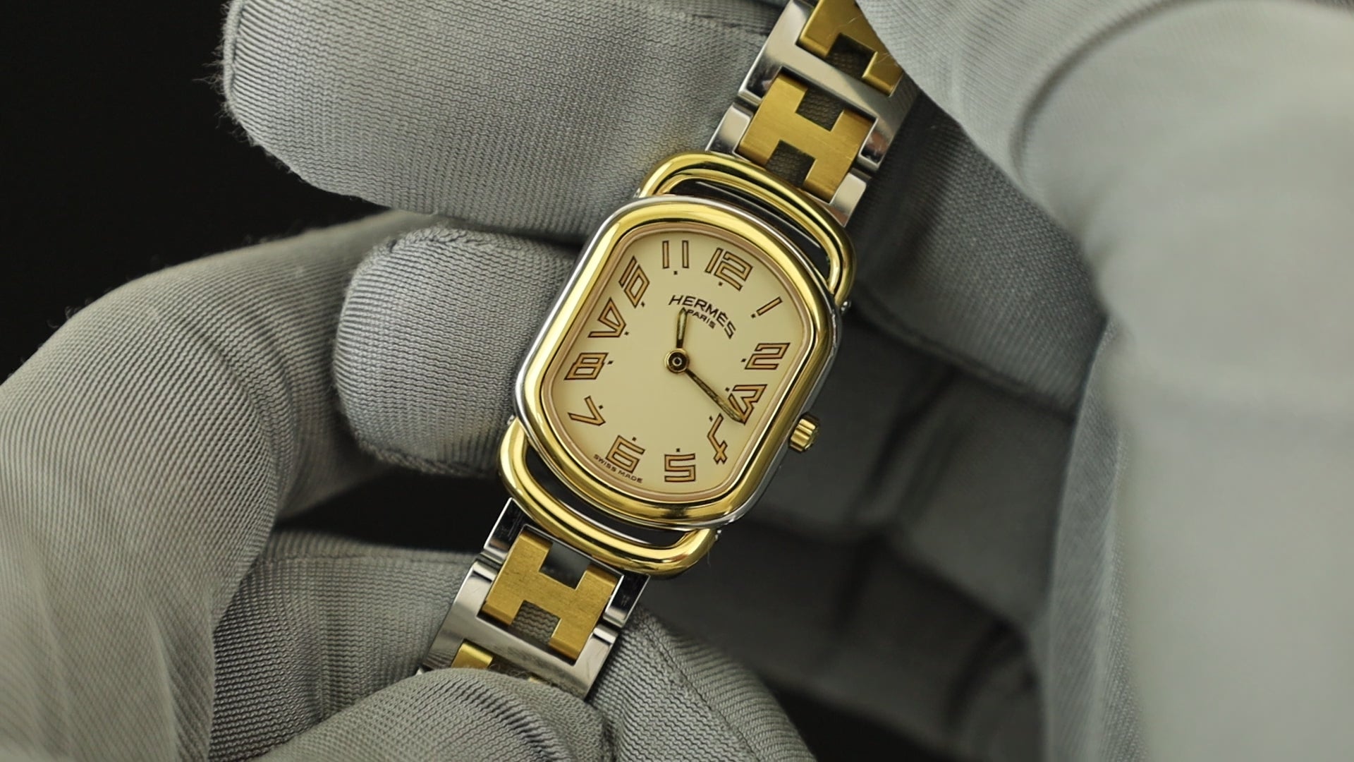 Hermès Rally Quartz Cal.976.001 SS/GP SS/GP Ivory Dial Box Booklet Warranty (1995) Overhauled