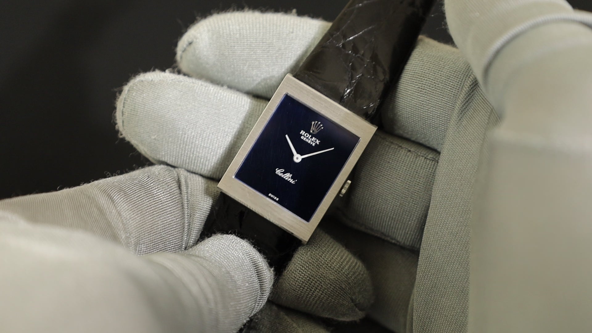 ロレックス チェリーニ 4014 手巻き Cal.1600 750WG 革 純正尾錠(GP) ブルー文字盤 35番台(1972年)オーバーホール済み