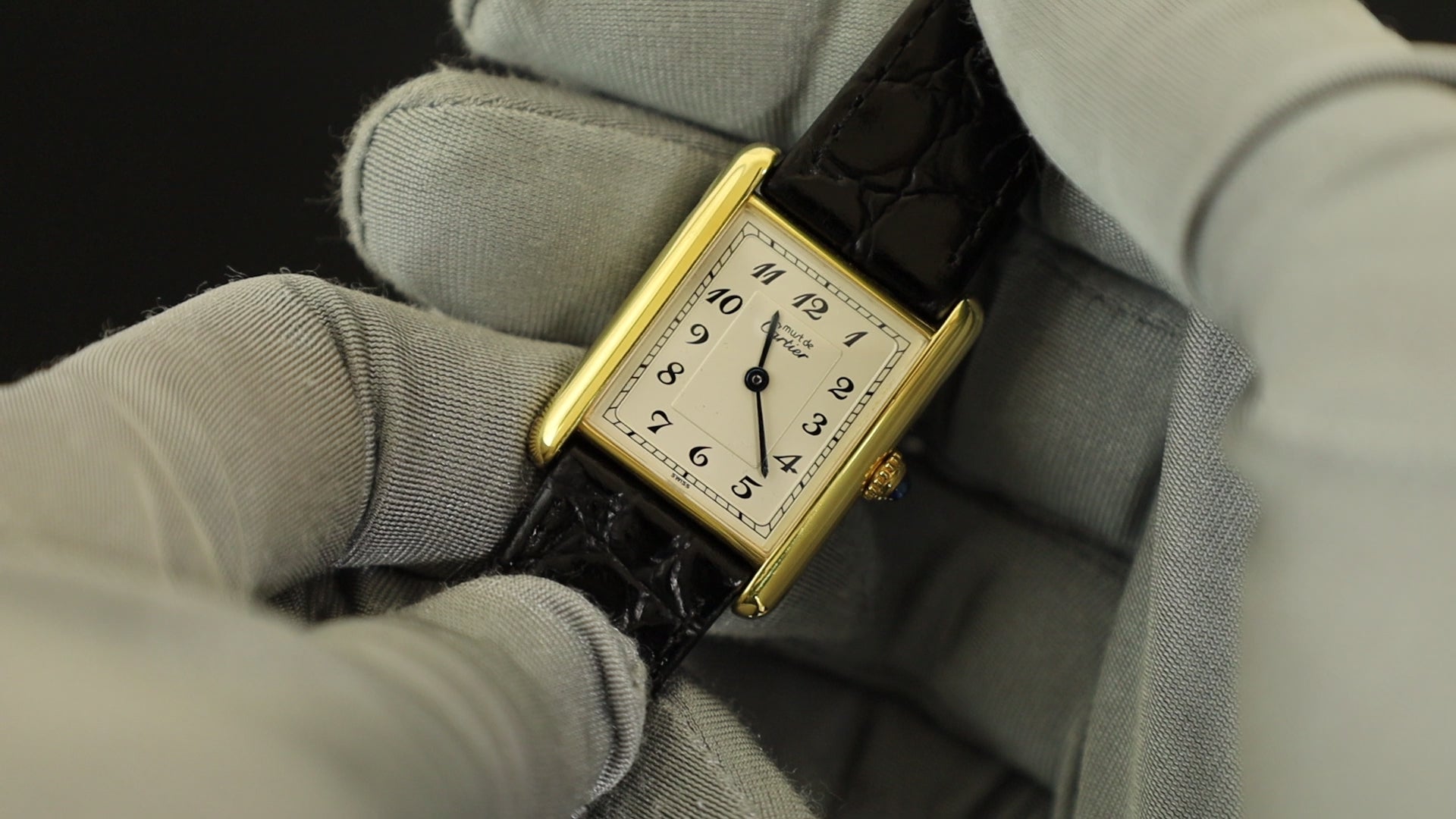 Cartier Must Tank LM 590005 Quartz Caliber 90 SV925 Leather Strap with Genuine GP Buckle Arabic Dial Circa 1982-1995 Overhauled and Finished to Like New