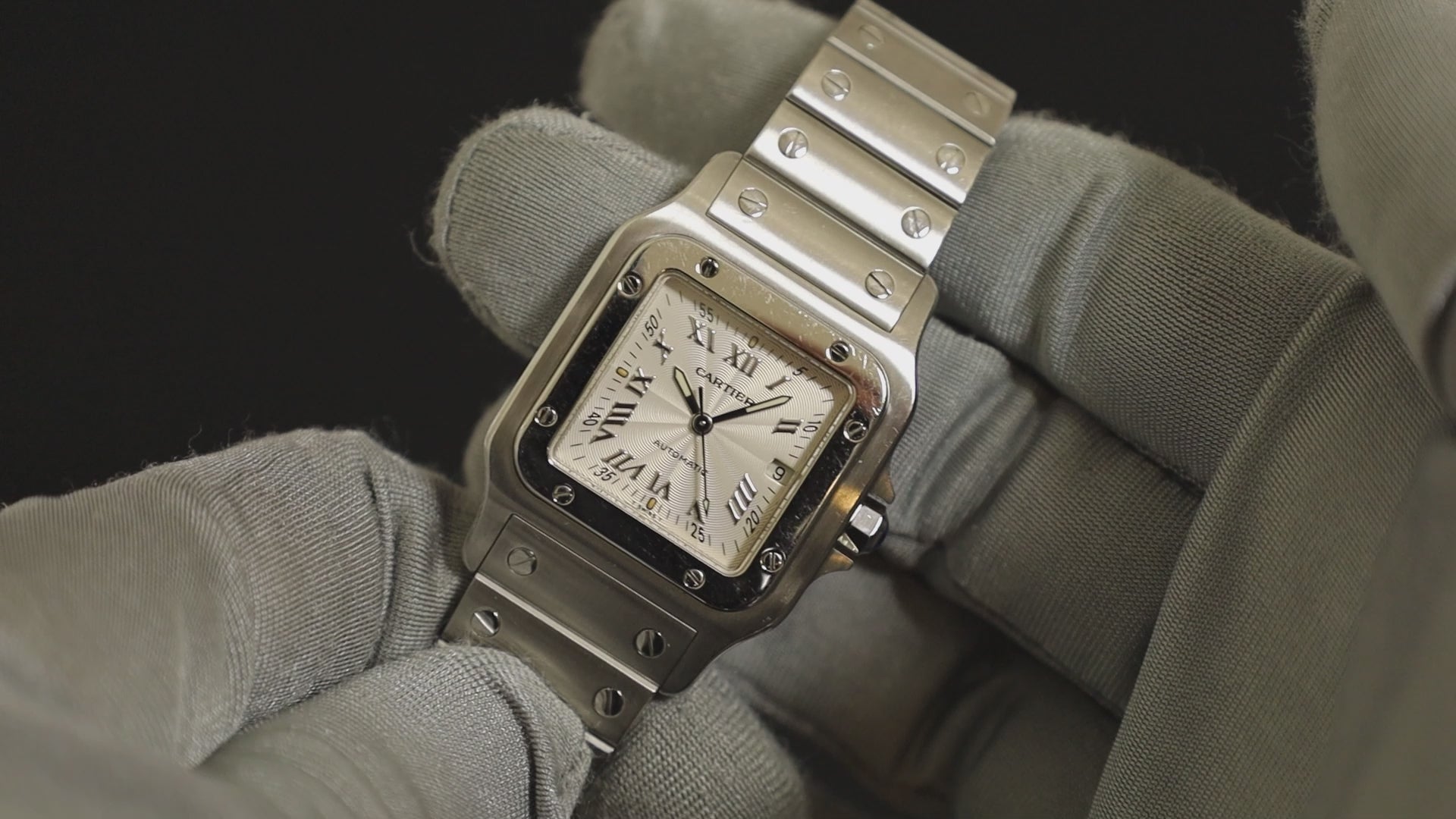 カルティエ サントス ガルベ LM W20040D6 / 2319 自動巻き Cal.ETA2000-1 SS SS シルバーギョーシェ文字盤 箱 オーバーホール済み