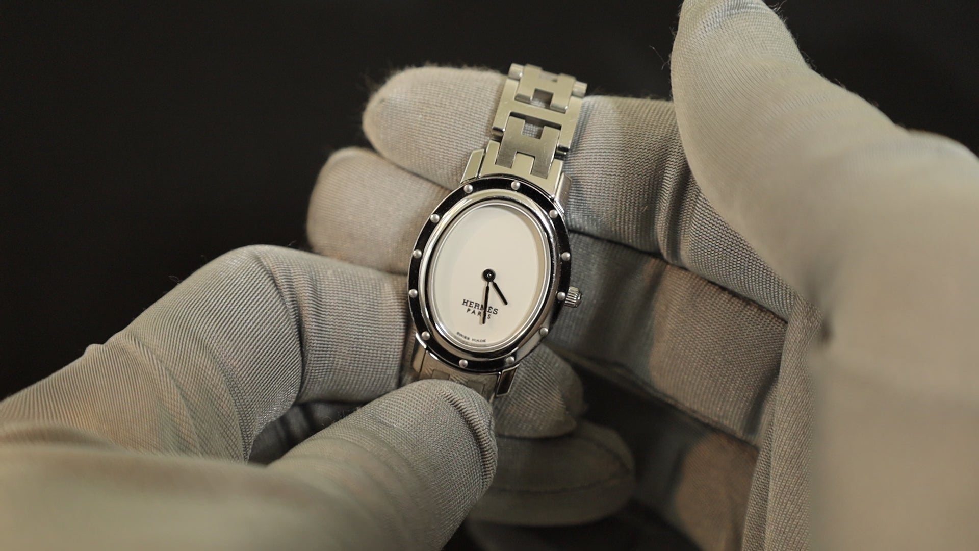 Hermes Clipper Oval CO1.210 Quartz Cal.976.001 SS SS White Guilloche Dial Overhauled