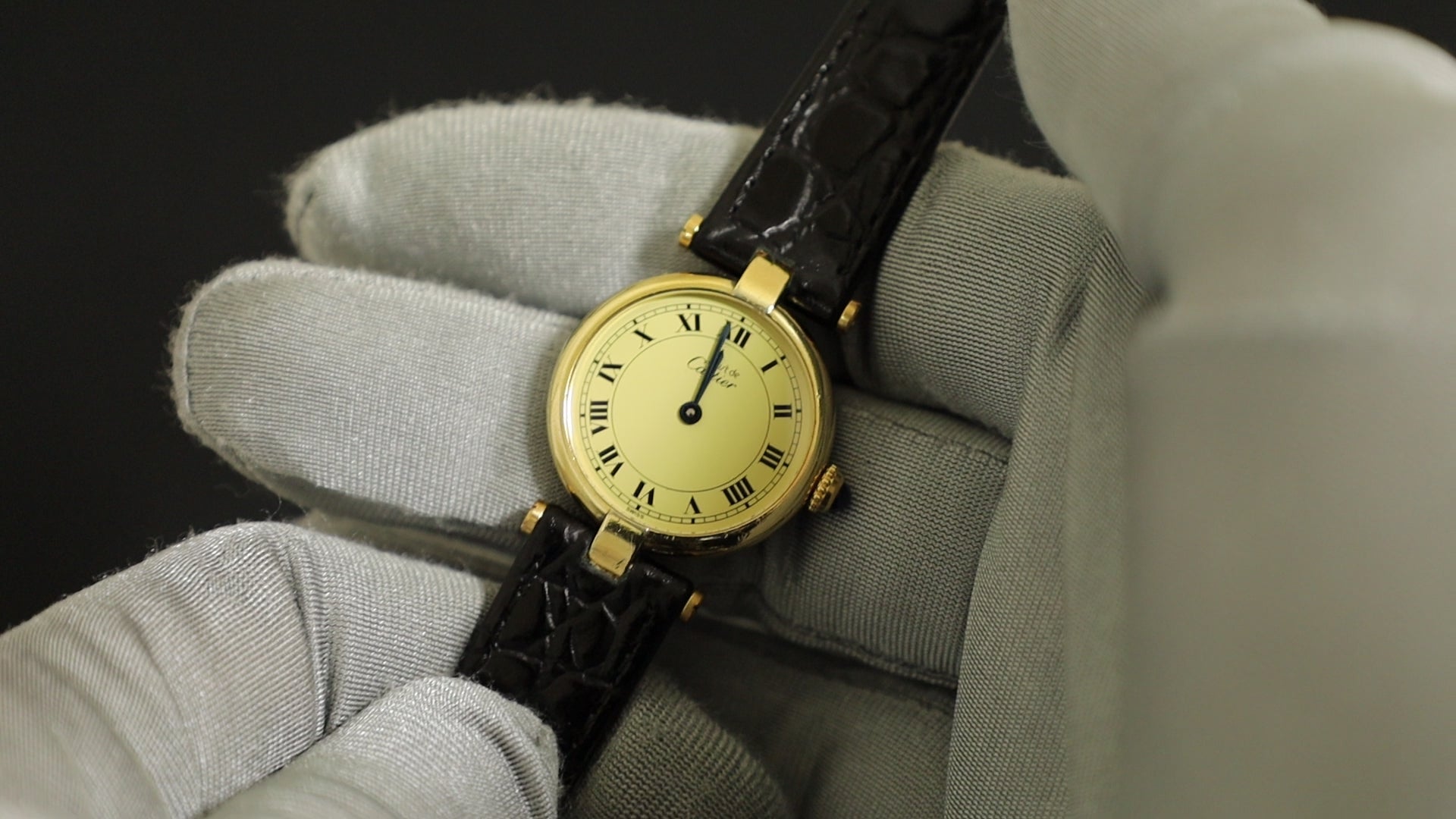 カルティエ マスト ヴァンドーム VLC SM 590004 クォーツ Cal.690 SV925 革 純正尾錠(GP)アイボリーローマン文字盤 オーバーホール済み