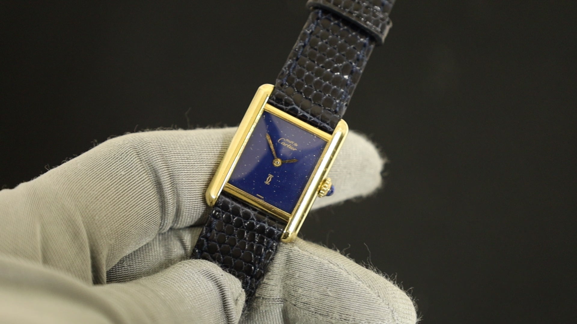 Cartier Must Tank SM Manual Winding Caliber 78-1 SV925 Leather Strap with Genuine GP Buckle, Lapis Lazuli Dial (SWISS Marking), Overhauled