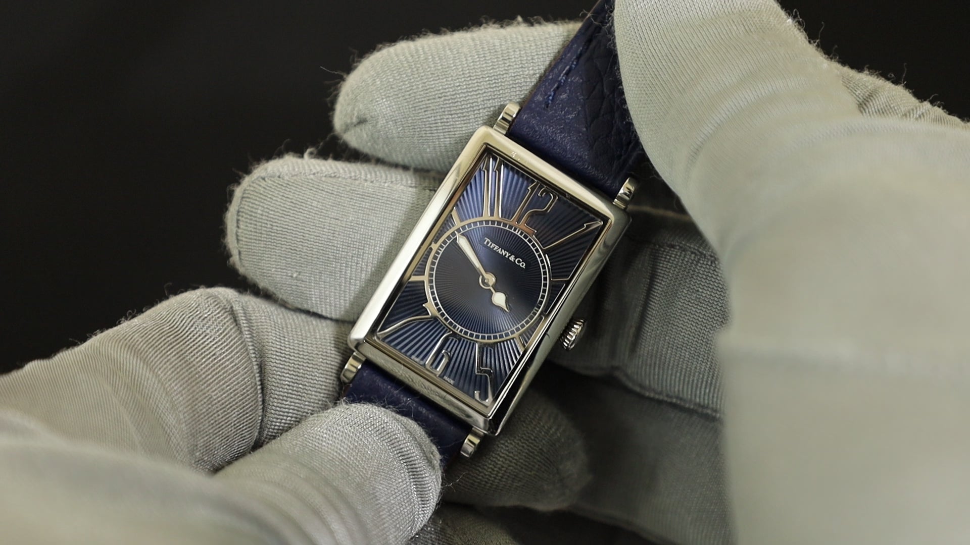 Tiffany Gallery Z3001.10.10A61A50A Quartz Caliber ETA976.001 Stainless Steel Leather Strap with Genuine Stainless Steel Buckle, Blue Arabic Dial, Overhauled