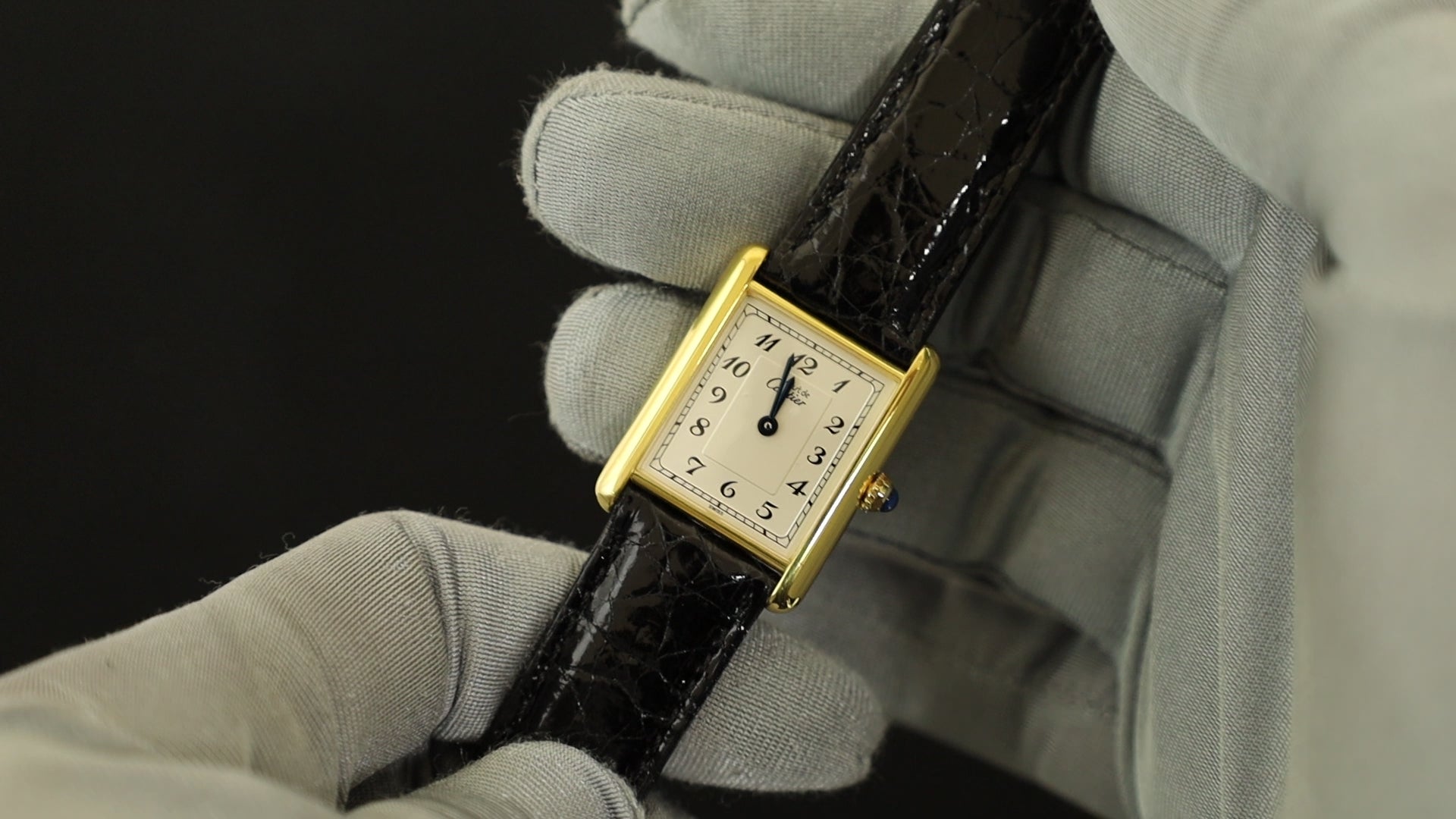 カルティエ マストタンク LM 590005 クォーツ Cal.90 SV925 革 純正尾錠(GP) アラビア文字盤 オーバーホール済み 新品仕上げ済み