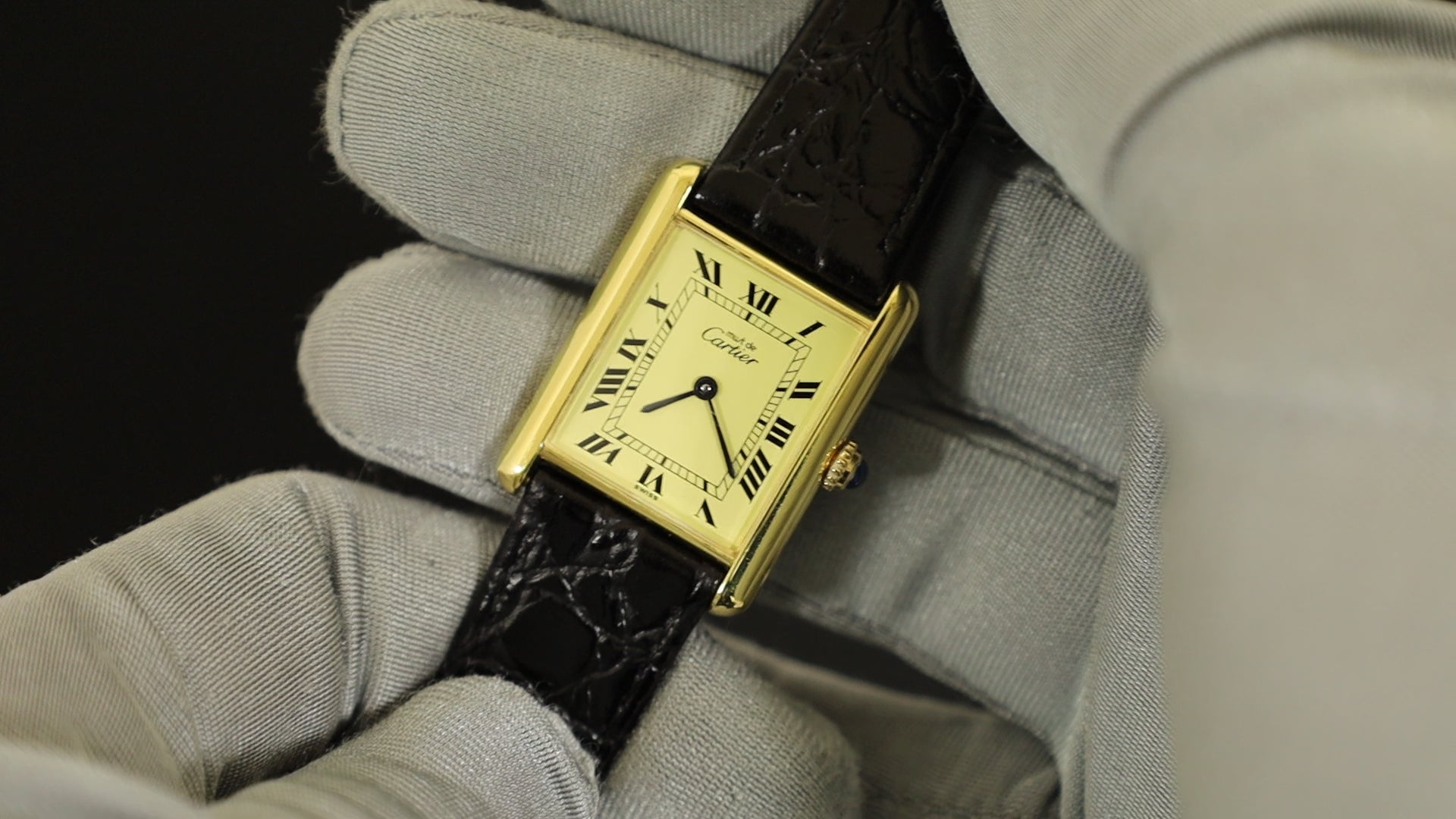 Cartier Must Tank LM 590005 Quartz Cal.90 SV925 Leather Genuine Buckle (GP) Ivory Roman Dial Overhauled and Finished to Like New