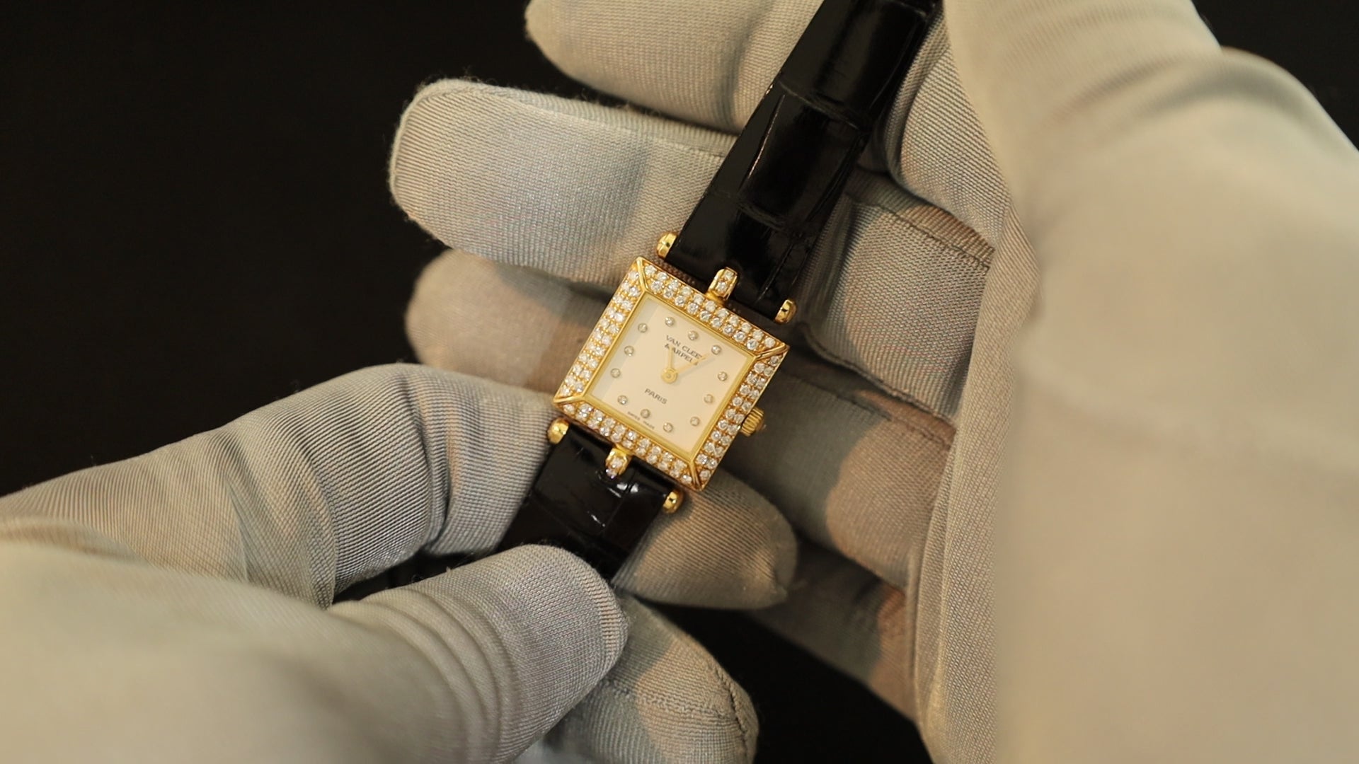 Van Cleef & Arpels Fantasy Carre 122645 Quartz Cal.976.001 18K Genuine leather strap Genuine buckle (750) 12P diamond/white dial Overhauled