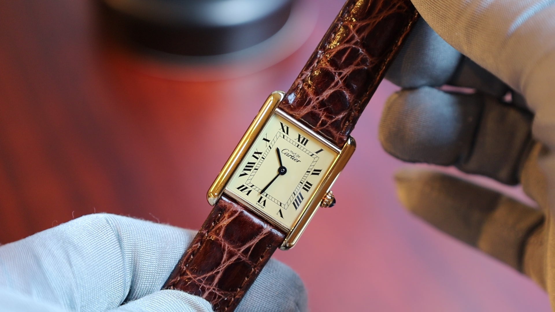 Cartier Must Tank LM 590005 Quartz Cal.90 SV925 Leather Genuine Buckle (GP) Ivory Roman Dial Overhauled