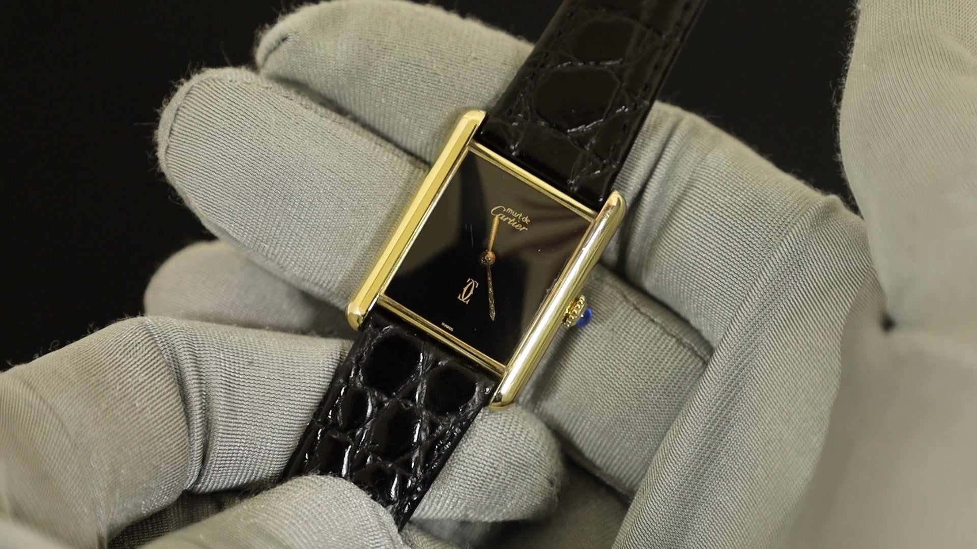 Cartier Must Tank LM Manual Winding Cal. 78-1 SV925 Leather Genuine Buckle (GP) Onyx Dial Box Booklet Warranty (1981) Overhauled
