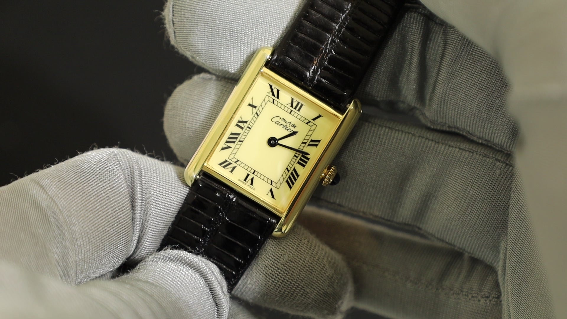 Cartier Must Tank LM, manual winding, SV925, leather, genuine buckle (GP), ivory Roman dial, complete service (full maintenance) completed at a Cartier boutique.