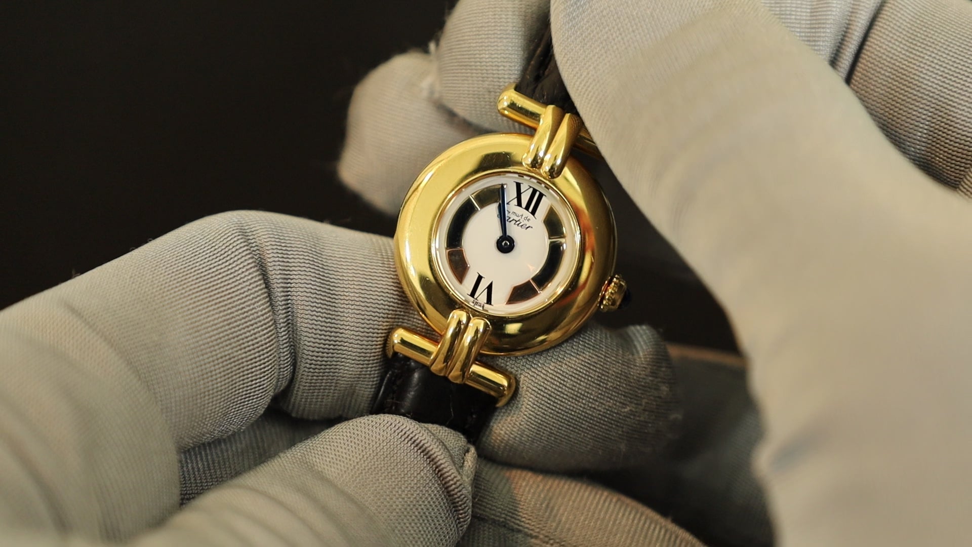 Cartier Must Colisee W1006654/1902 Quartz Cal.90.06 SV925 Leather Genuine D-buckle (GP) Trinity dial Overhauled
