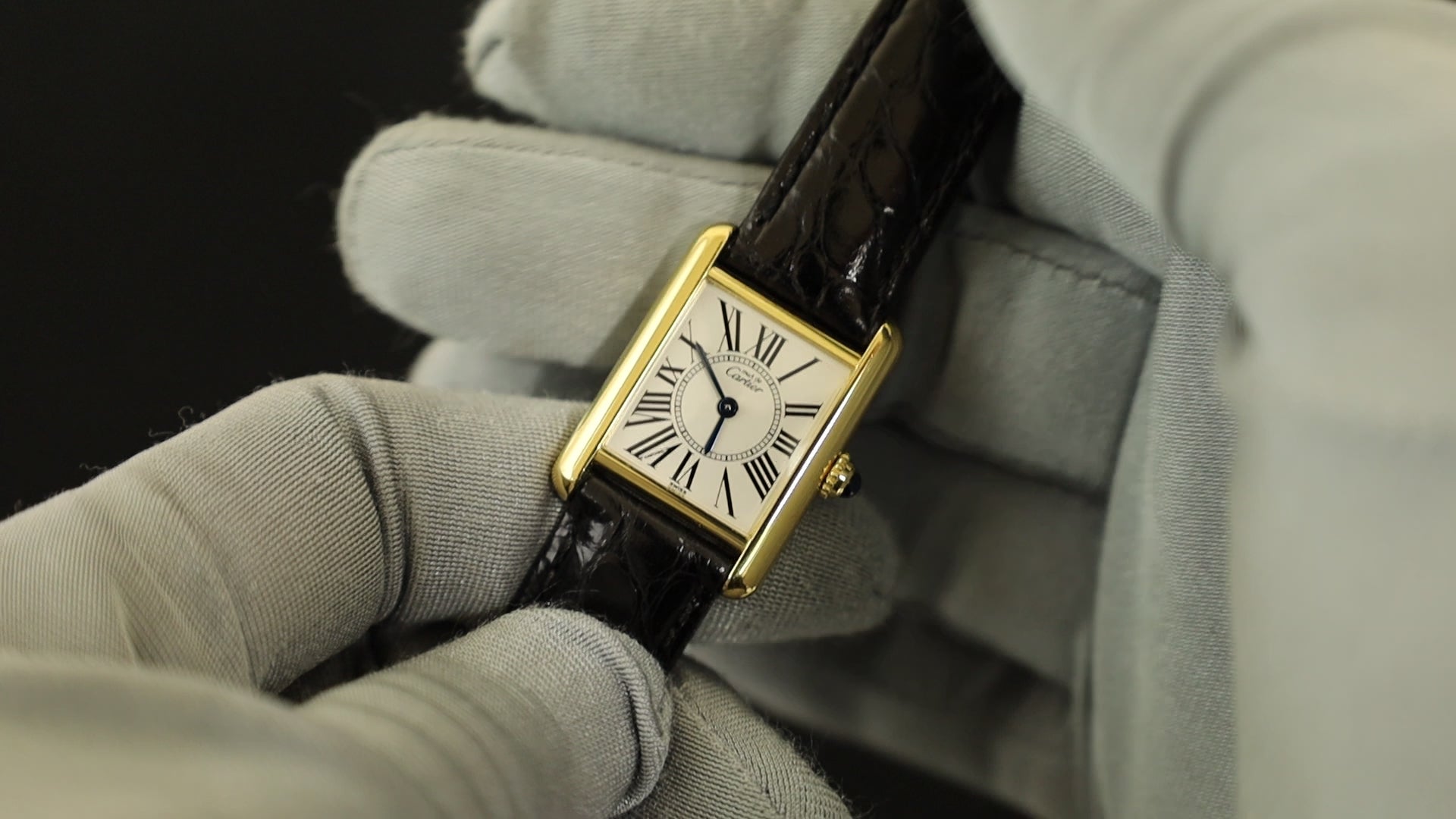 カルティエ マストタンク SM 1613 クォーツ Cal.057 SV925 革 純正Dバックル(GP) オパラン文字盤 箱 冊子 保証書 オーバーホール済み
