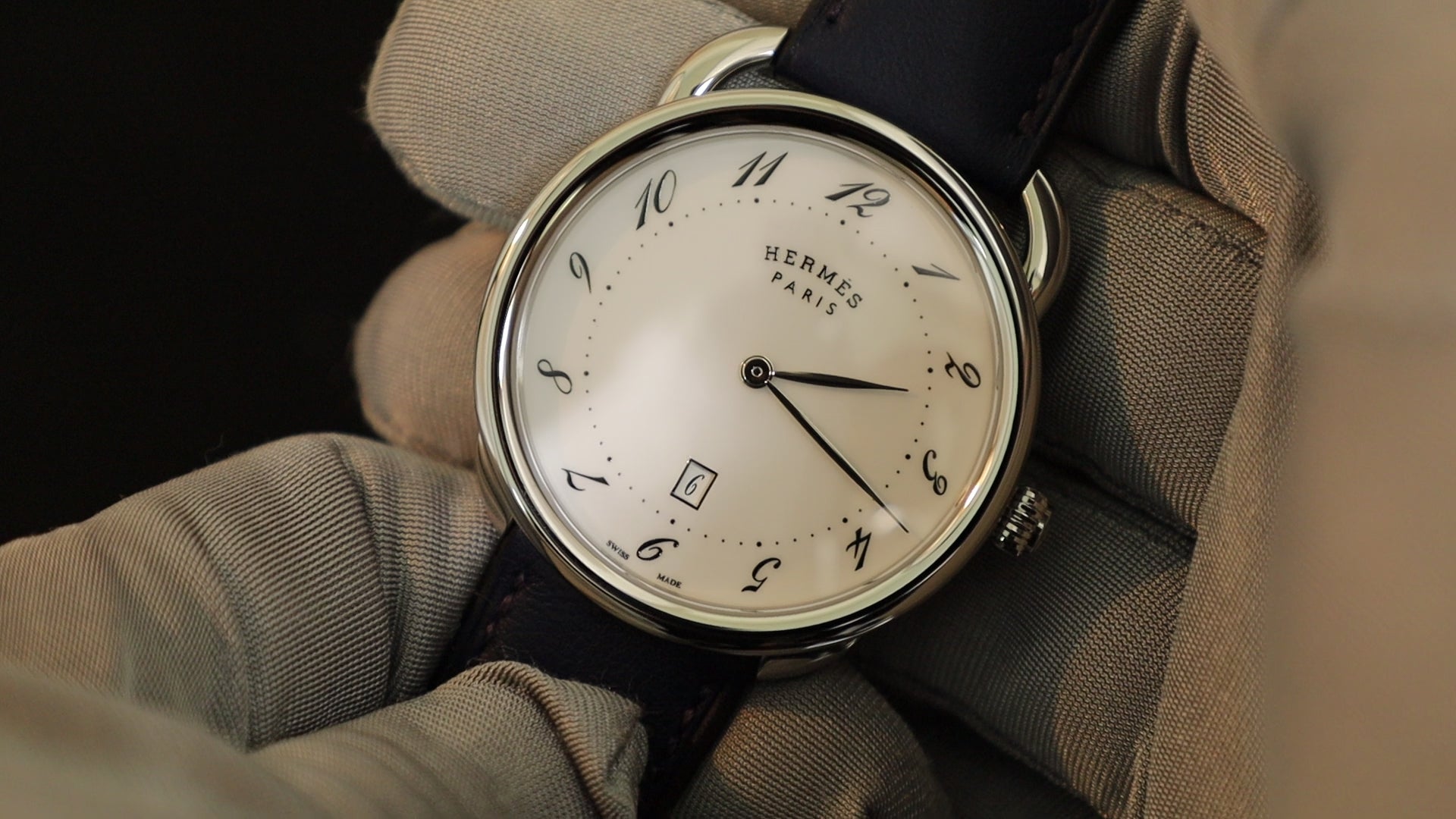 Hermes Arceau AR7Q.810 Quartz SS Genuine leather strap (Z engraved: 2021) Genuine buckle (SS) White Arabic dial Box Booklet Warranty (2024) Overhauled