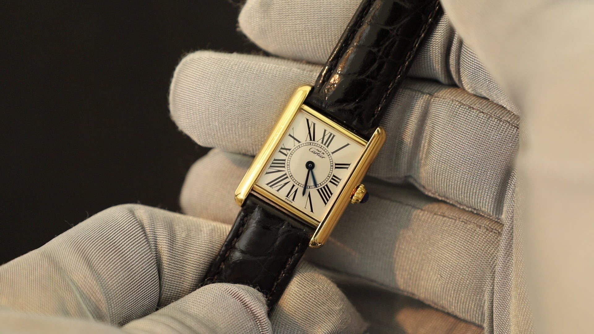 Cartier Must Tank SM 5057001 Quartz Cal.057 SV925 Leather Genuine D-buckle (GP) Opalan dial Box Overhauled