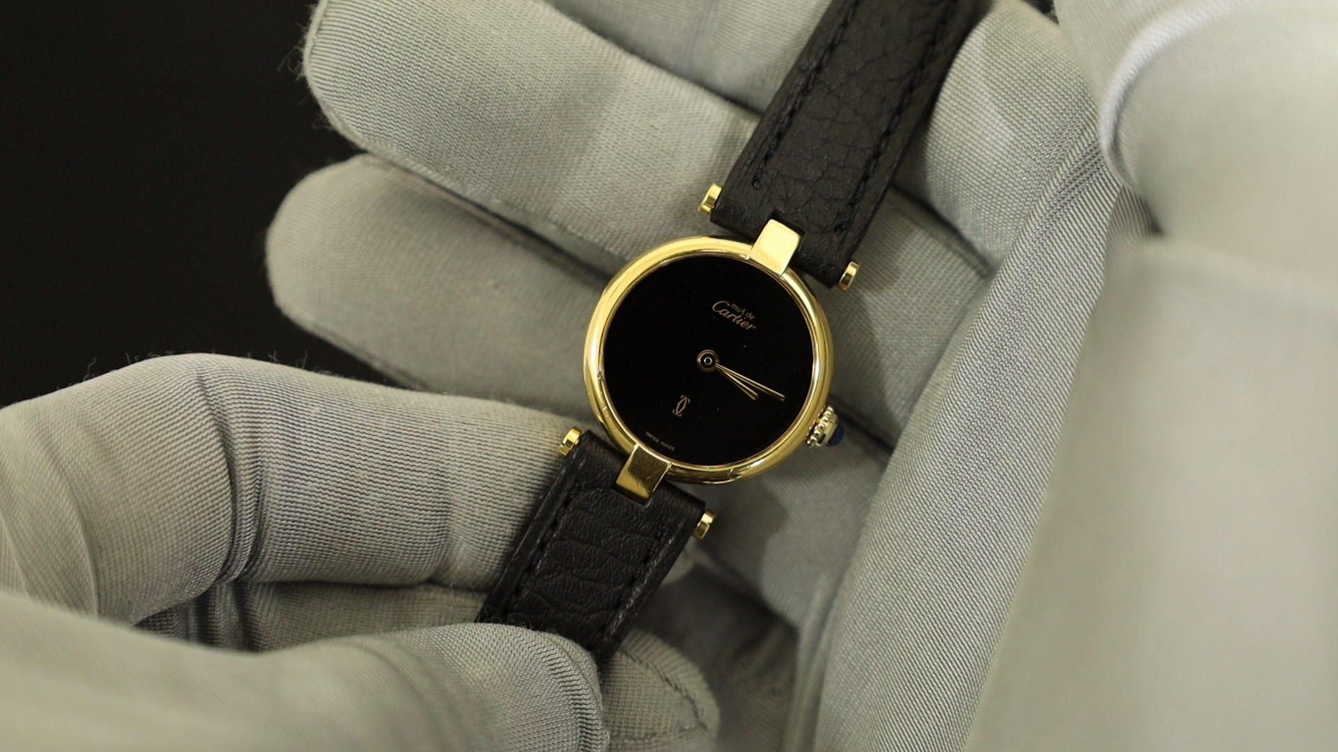 Cartier Must Vendôme VLC SM Quartz SV925 Leather Genuine Buckle (GP) Onyx Dial Box Booklet Tag Warranty (1985) Completely serviced at a Cartier boutique