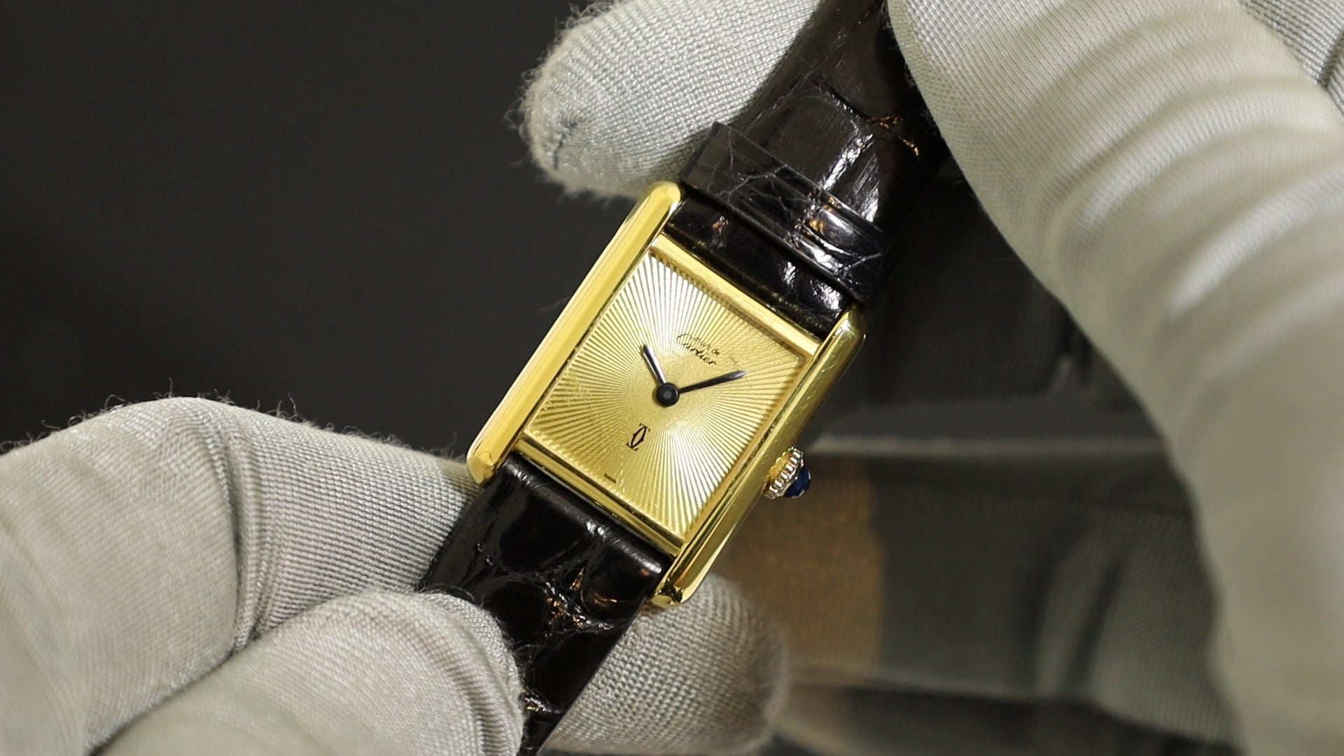 Cartier Must Tank SM Manual Winding Cal. 78-1 SV925 Genuine Buckle (GP) Sunray Dial Overhauled and Finished to Look Like New