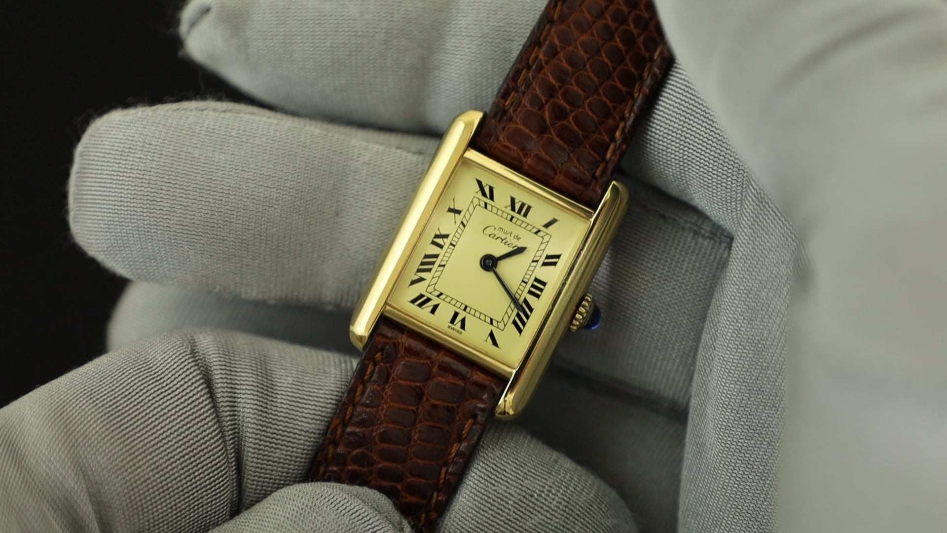 カルティエ マストタンク SM 手巻き Cal.78-1 SV925 純正革ベルト 純正尾錠(GP) アイボリーローマン文字盤 オーバーホール済み