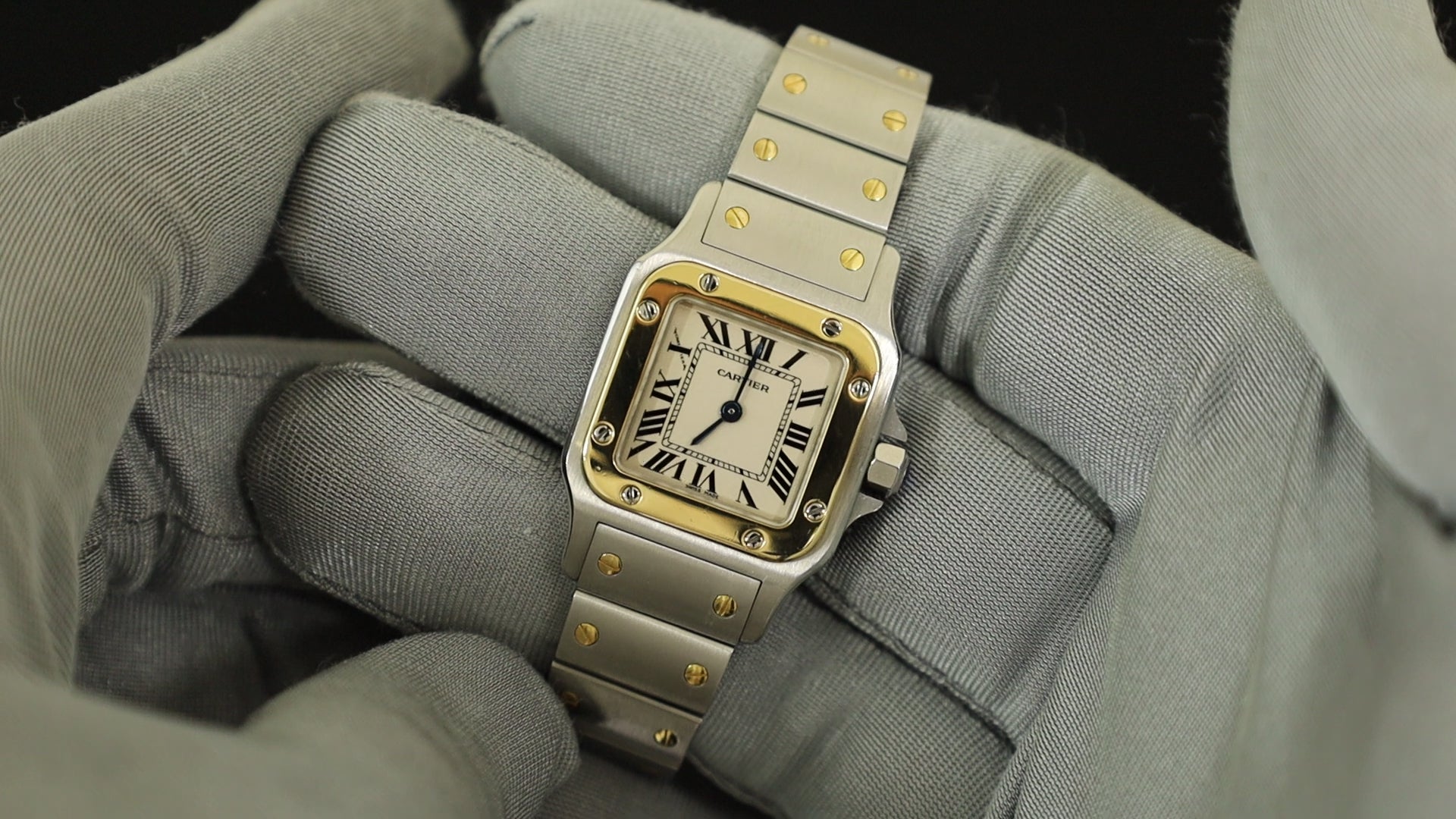 カルティエ サントス ガルベ SM W20012C4 / 1567 クォーツ Cal.157 SS/YG SS/YG ホワイトローマン文字盤 箱 冊子 取り扱い説明DVD 保証書(2009年) オーバーホール済み
