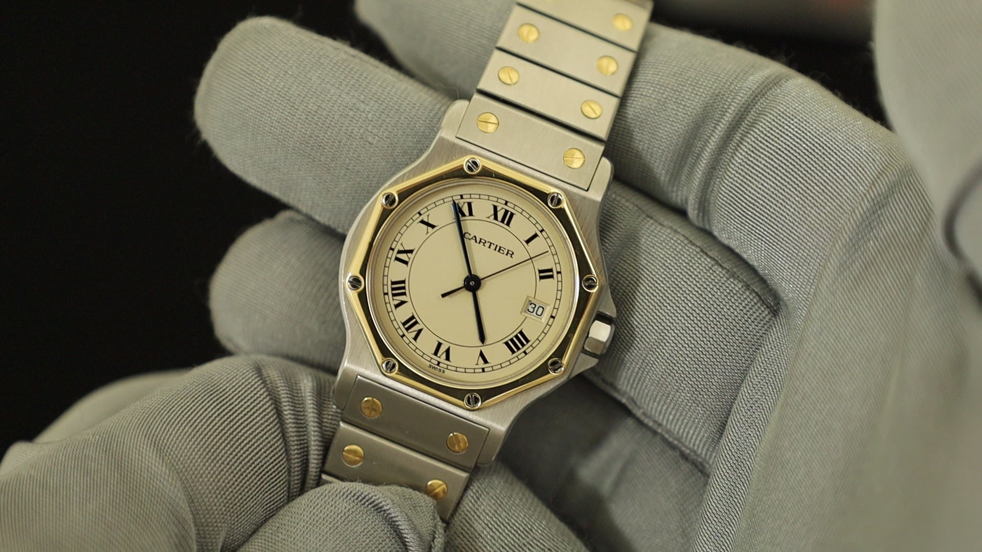 カルティエ サントス オクタゴン LM 187902 クォーツ Cal.87 SS/YG SS/YG アイボリーローマン文字盤 箱 冊子 タグ 保証書(1992年) オーバーホール済み