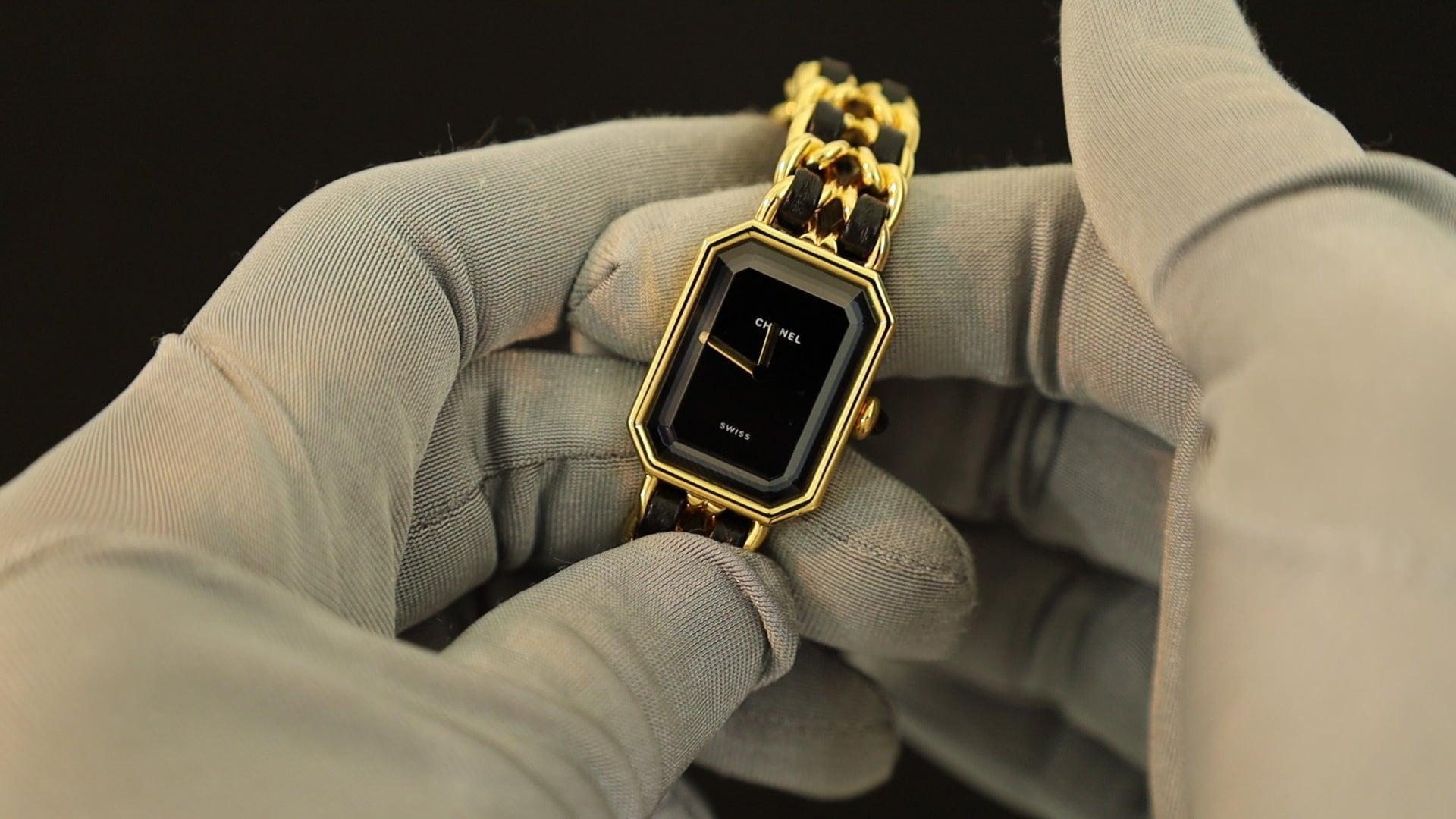 シャネル プルミエール S H0001 クォーツ Cal.976.001 GP GP/革 ブラック文字盤 オーバーホール済み