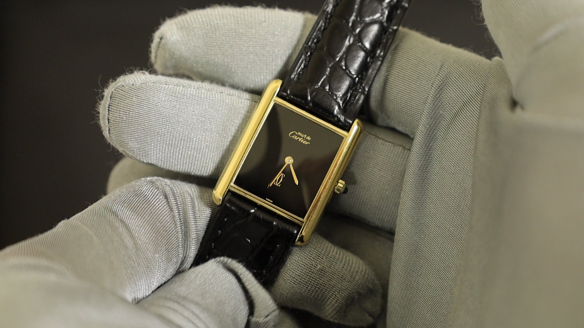 カルティエ マストタンク LM 6 81006 クォーツ Cal.81 SV925 革 純正尾錠(GP) オニキス文字盤 箱 冊子 保証書(1987年) タグ オーバーホール済み